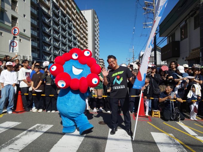 ※写真一枚目は、昨年の高石だんじり祭りにミャクミャクが来てくれた様子